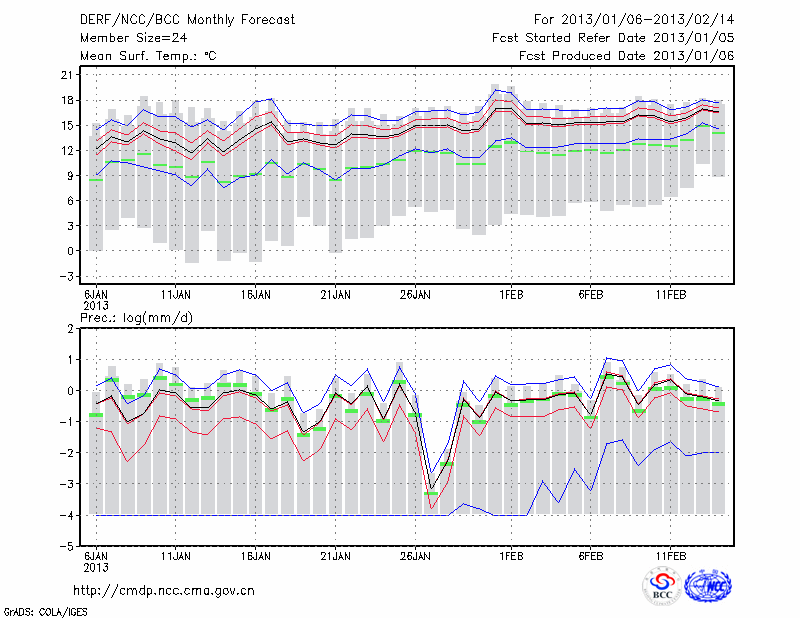 蒙 自 (LAT:23.38 LON:103.38) 2013-01-06        预测