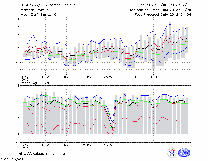 蚌 埠 (LAT:32.95 LON:117.37) 2013-01-06        预测