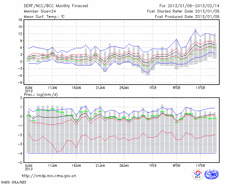 南 京 (LAT:32.00 LON:118.80) 2013-01-06        预测