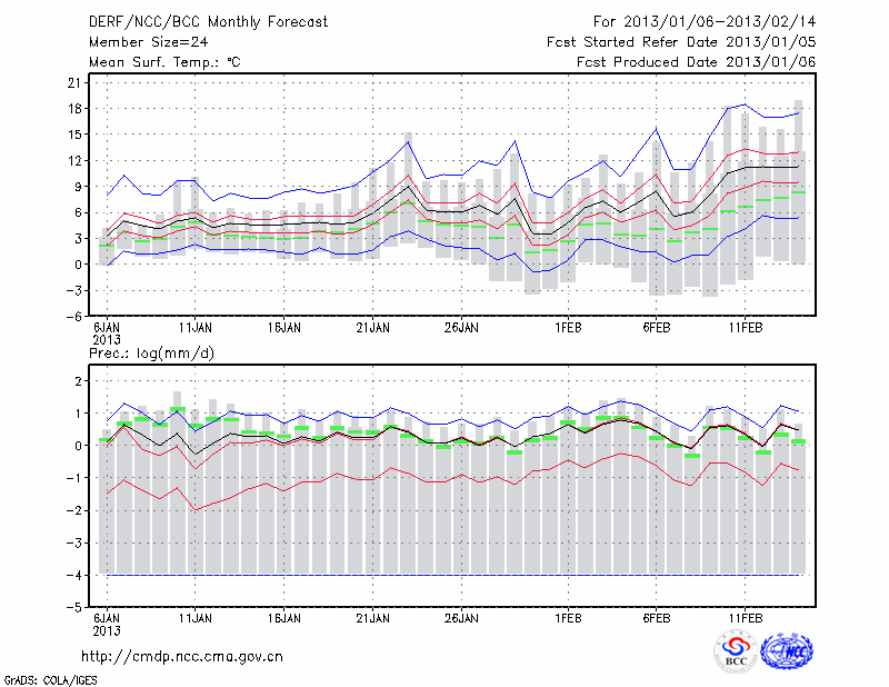 南 昌 (LAT:28.60 LON:115.92) 2013-01-06        预测
