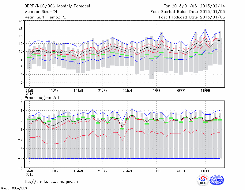 福 州 (LAT:26.08 LON:119.28) 2013-01-06        预测