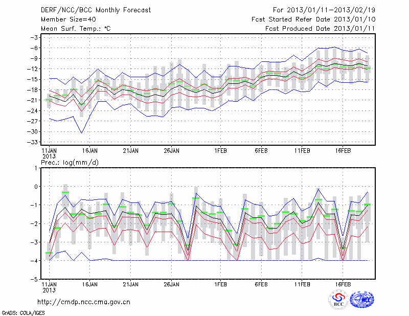 齐齐哈尔 (LAT:47.38 LON:123.92) 2013-01-11        预测