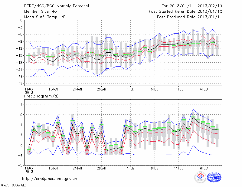 乌兰浩特 (LAT:46.08 LON:122.05) 2013-01-11        预测