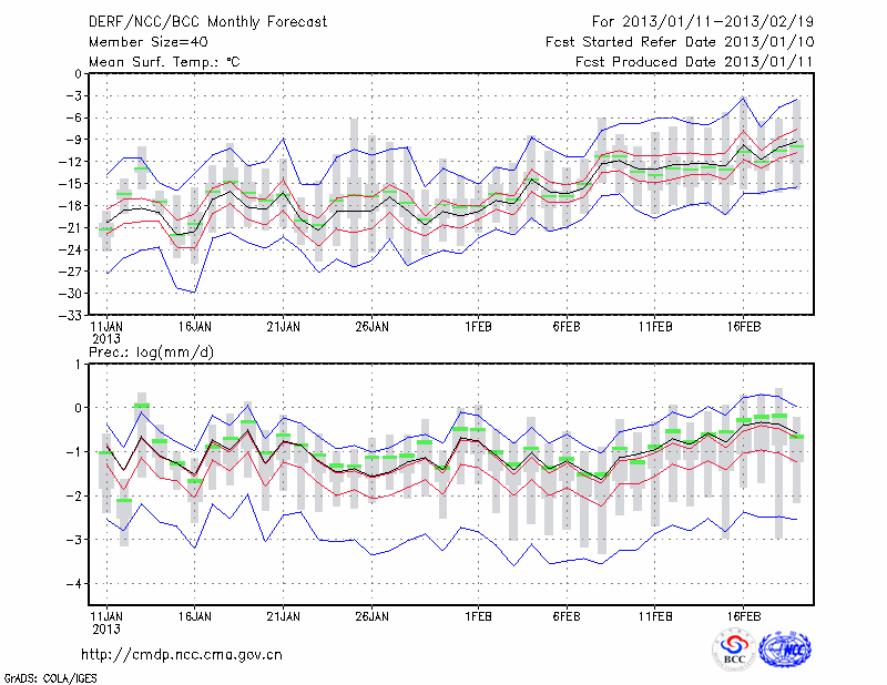 哈 尔 滨 (LAT:45.75 LON:126.77) 2013-01-11        预测