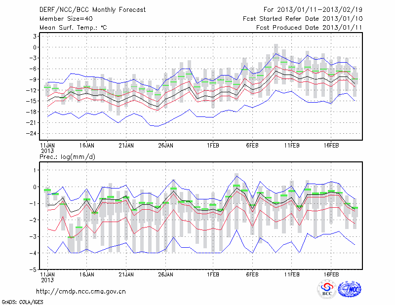 乌 苏 (LAT:44.43 LON:84.66) 2013-01-11        预测