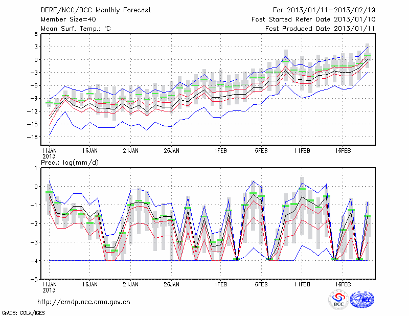 哈 密 (LAT:42.82 LON:93.52) 2013-01-11        预测