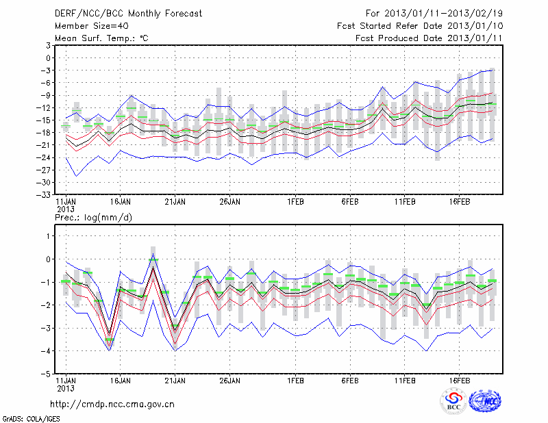 锡林浩特 (LAT:43.95 LON:116.07) 2013-01-11        预测