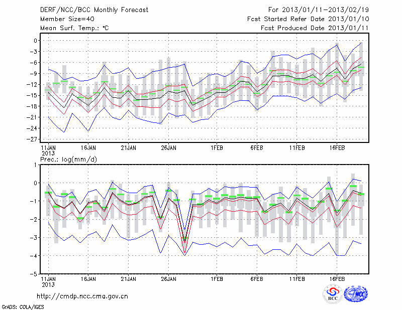 长 春 (LAT:43.90 LON:125.22) 2013-01-11        预测