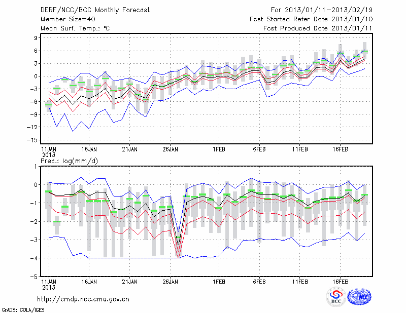 甘 孜 (LAT:31.62 LON:100.00) 2013-01-11        预测