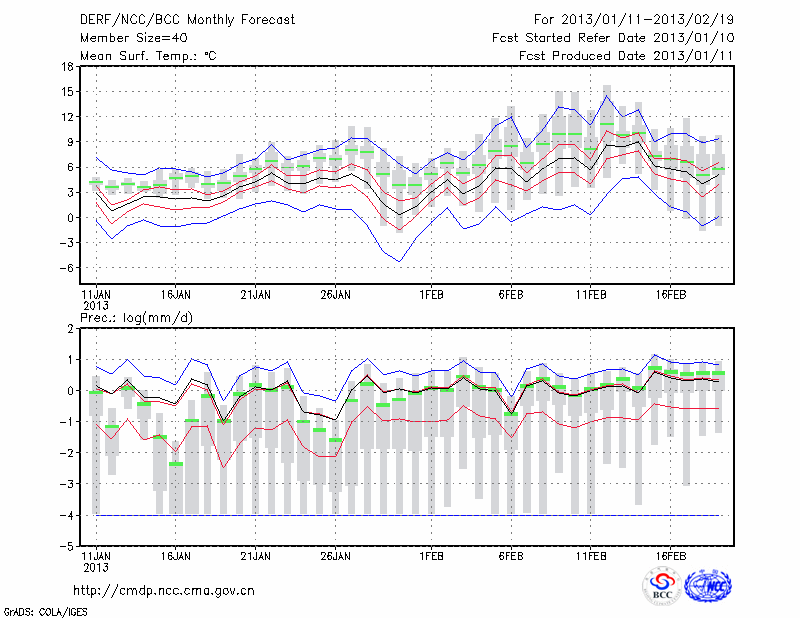 钟 祥 (LAT:31.17 LON:112.57) 2013-01-11        预测