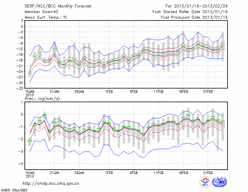 哈 尔 滨 (LAT:45.75 LON:126.77) 2013-01-16        预测