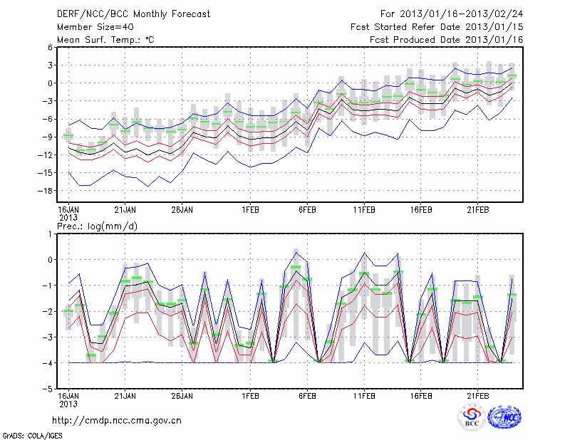 哈 密 (LAT:42.82 LON:93.52) 2013-01-16        预测