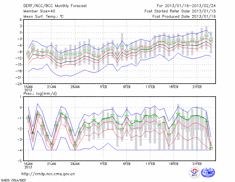 呼和浩特 (LAT:40.82 LON:111.68) 2013-01-16        预测