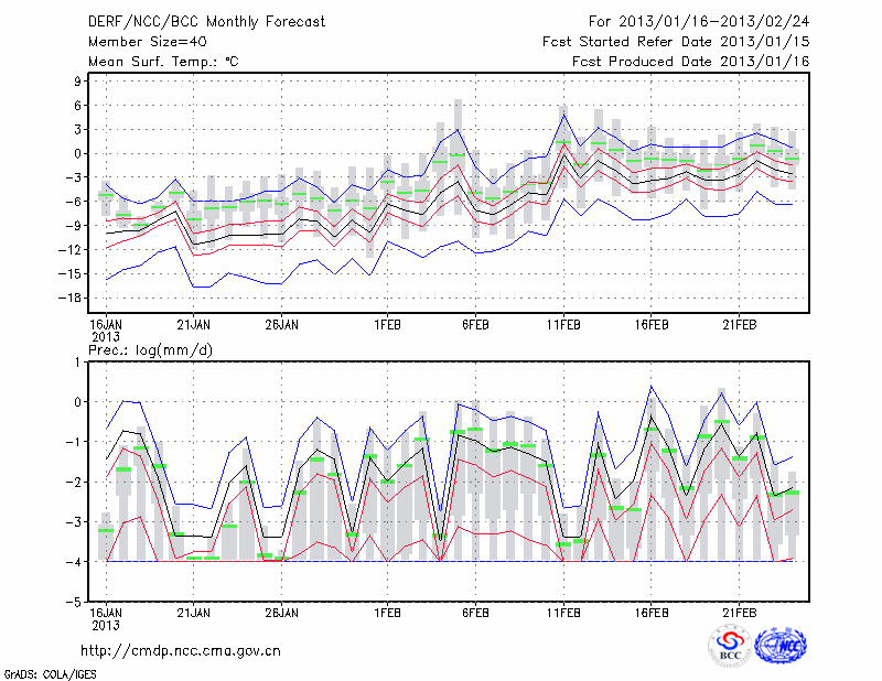 银 川 (LAT:38.48 LON:106.22) 2013-01-16        预测