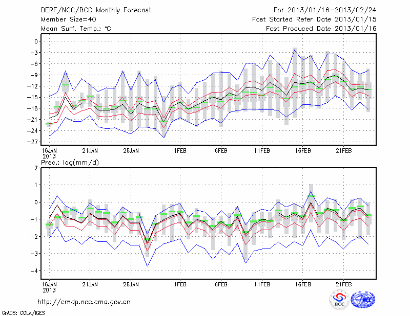 牡 丹 江 (LAT:44.57 LON:129.60) 2013-01-16        预测