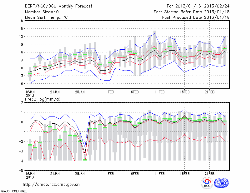 蚌 埠 (LAT:32.95 LON:117.37) 2013-01-16        预测