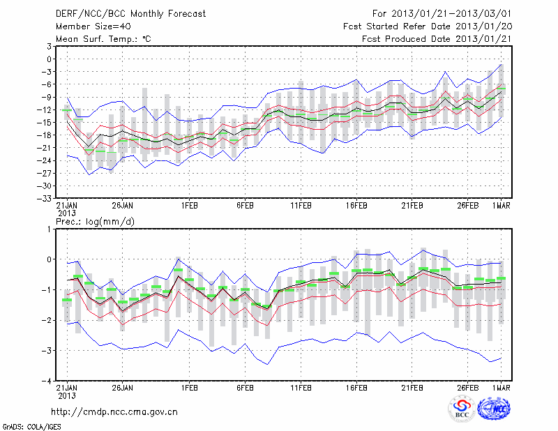 哈 尔 滨 (LAT:45.75 LON:126.77) 2013-01-21        预测