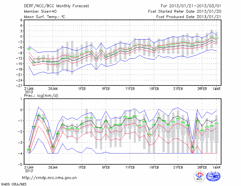 呼和浩特 (LAT:40.82 LON:111.68) 2013-01-21        预测