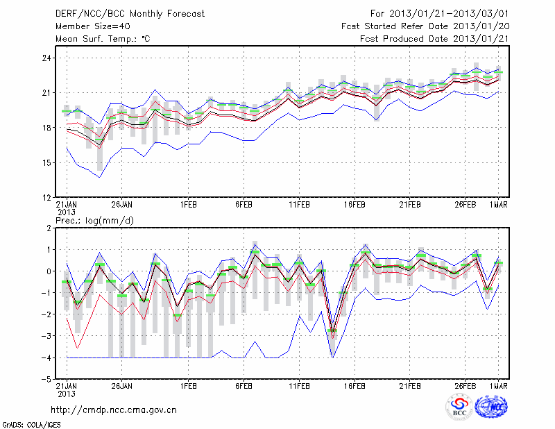 景 洪 (LAT:22.02 LON:100.80) 2013-01-21        预测