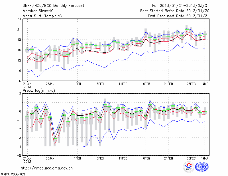 蒙 自 (LAT:23.38 LON:103.38) 2013-01-21        预测