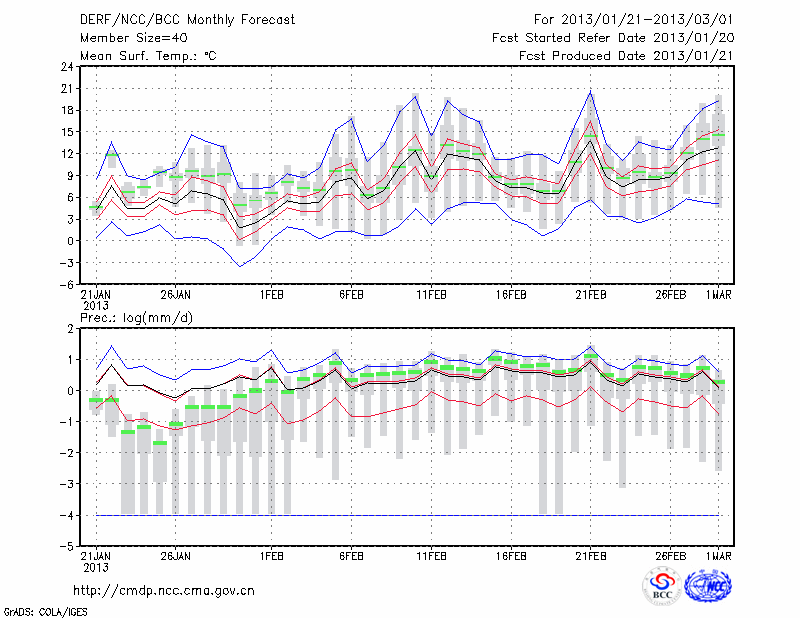 岳 阳 (LAT:29.38 LON:113.08) 2013-01-21        预测