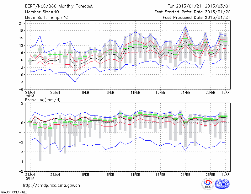 芷 江 (LAT:27.45 LON:109.68) 2013-01-21        预测