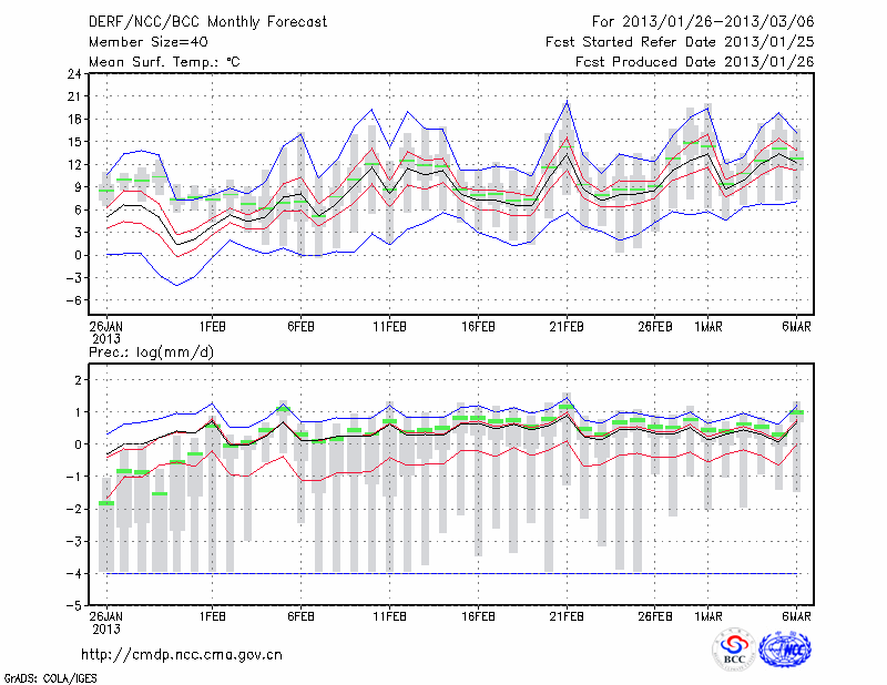 岳 阳 (LAT:29.38 LON:113.08) 2013-01-26        预测