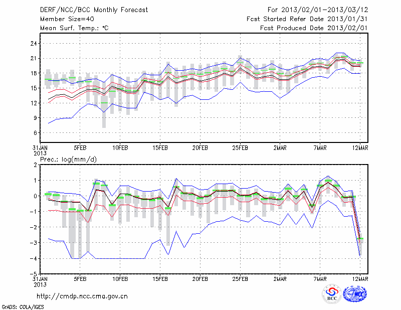 蒙 自 (LAT:23.38 LON:103.38) 2013-02-01        预测