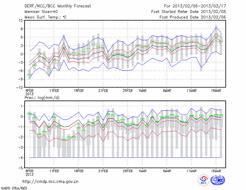 西 峰 镇 (LAT:35.73 LON:107.63) 2013-02-06        预测