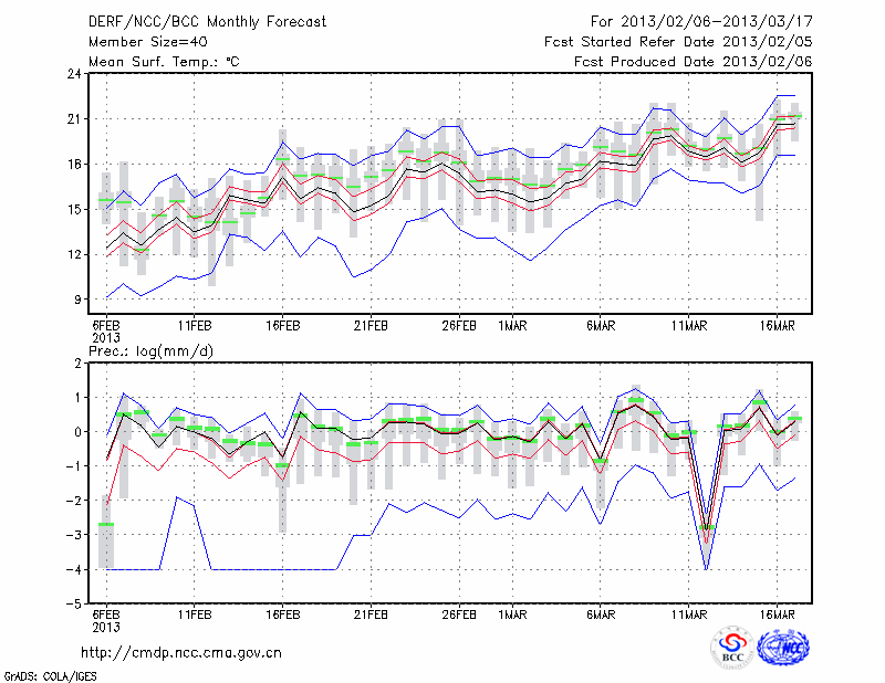 蒙 自 (LAT:23.38 LON:103.38) 2013-02-06        预测