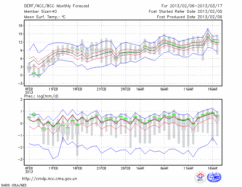 恩 施 (LAT:30.28 LON:109.47) 2013-02-06        预测