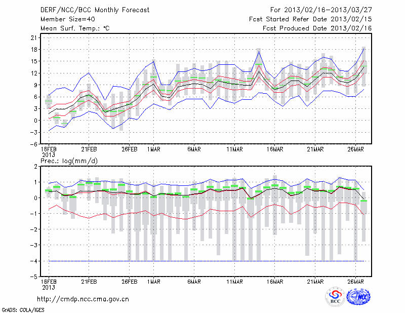 南 京 (LAT:32.00 LON:118.80) 2013-02-16        预测