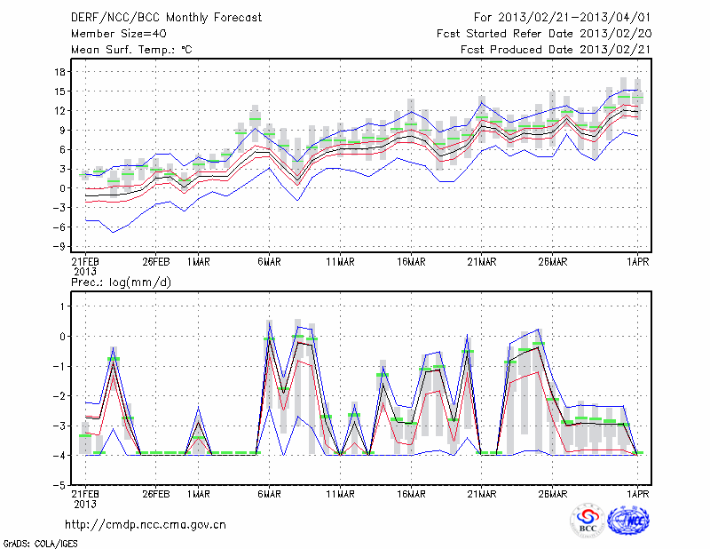 若 羌 (LAT:39.03 LON:88.17) 2013-02-21        预测