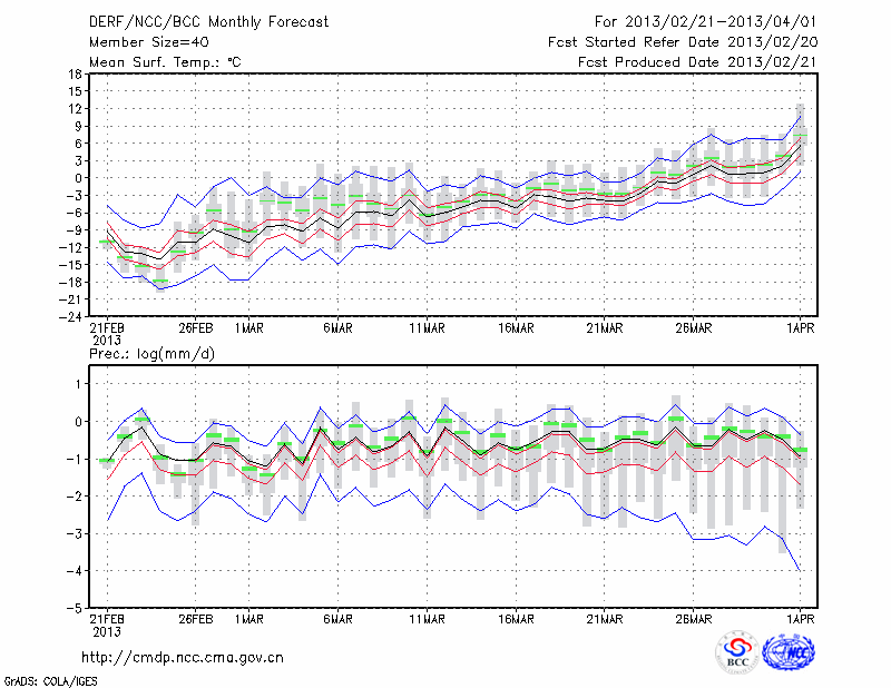牡 丹 江 (LAT:44.57 LON:129.60) 2013-02-21        预测