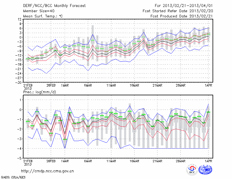 锡林浩特 (LAT:43.95 LON:116.07) 2013-02-21        预测