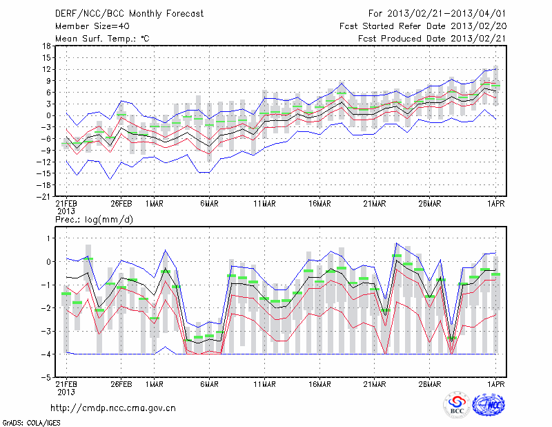 赤 峰 (LAT:42.27 LON:118.97) 2013-02-21        预测