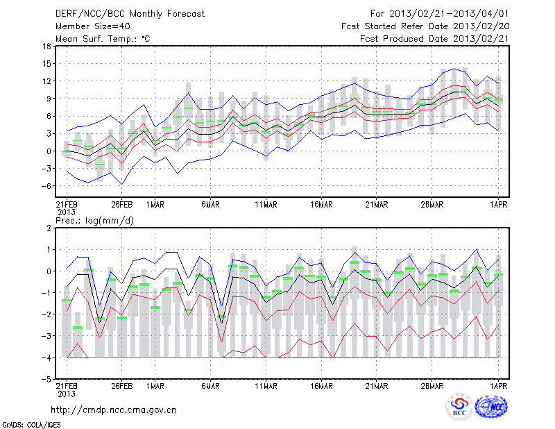 潍 坊 (LAT:36.70 LON:119.08) 2013-02-21        预测