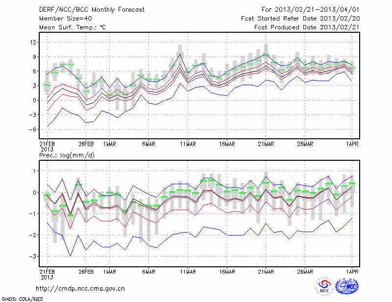 甘 孜 (LAT:31.62 LON:100.00) 2013-02-21        预测