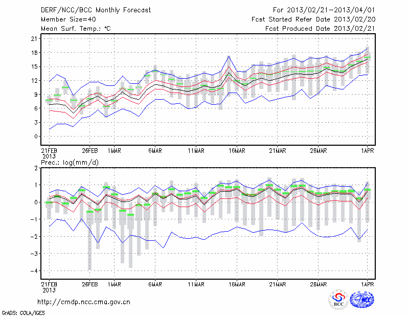 恩 施 (LAT:30.28 LON:109.47) 2013-02-21        预测