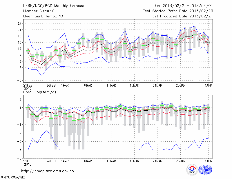 岳 阳 (LAT:29.38 LON:113.08) 2013-02-21        预测