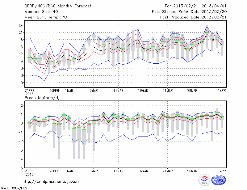 芷 江 (LAT:27.45 LON:109.68) 2013-02-21        预测