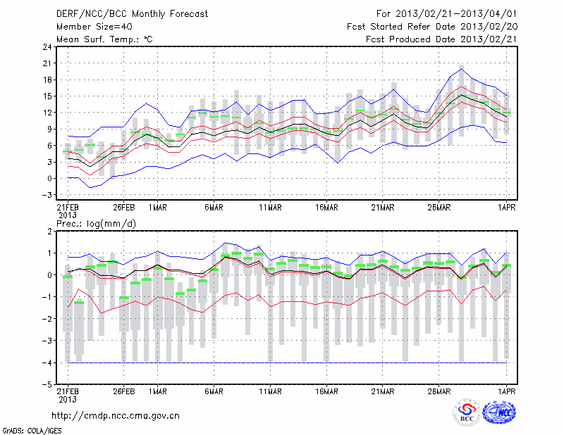 蚌 埠 (LAT:32.95 LON:117.37) 2013-02-21        预测