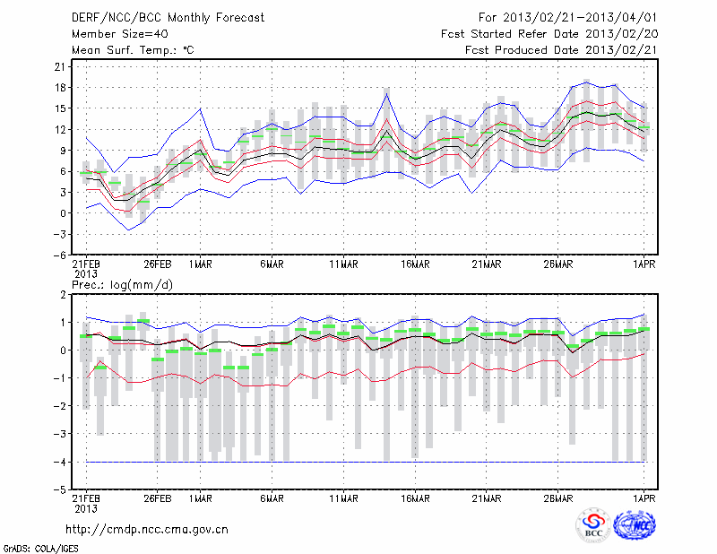 南 京 (LAT:32.00 LON:118.80) 2013-02-21        预测