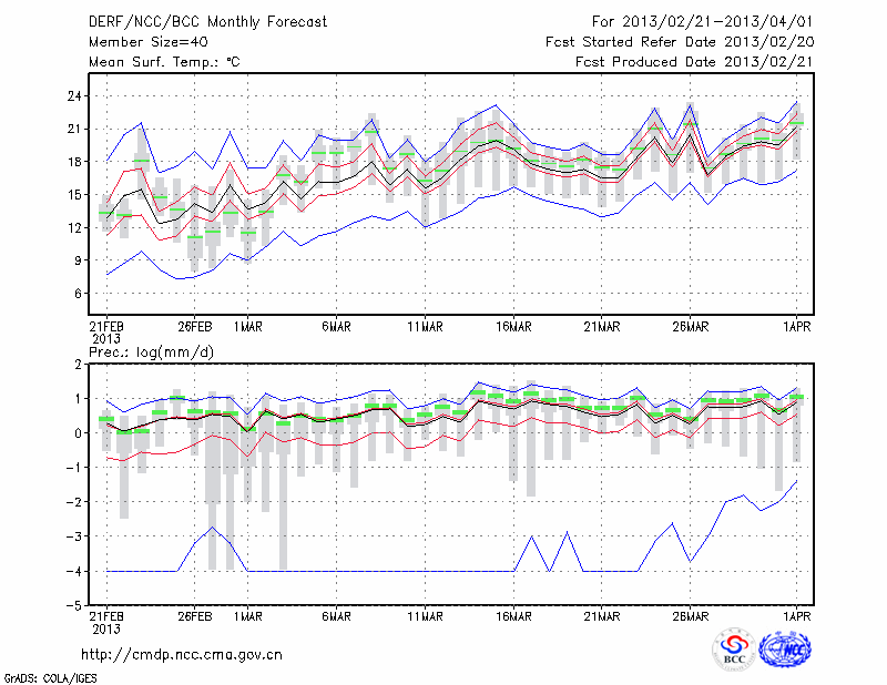 福 州 (LAT:26.08 LON:119.28) 2013-02-21        预测