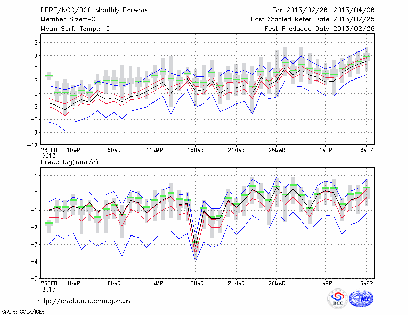 西 宁 (LAT:36.62 LON:101.77) 2013-02-26        预测