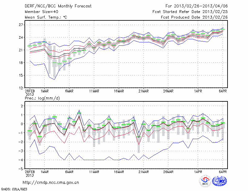 景 洪 (LAT:22.02 LON:100.80) 2013-02-26        预测