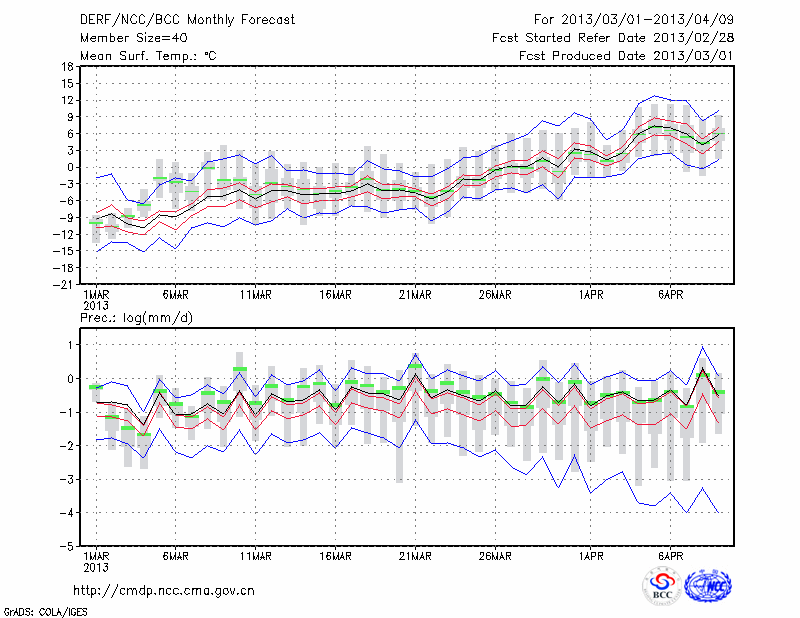 鸡 西 (LAT:45.28 LON:130.95) 2013-03-01        预测