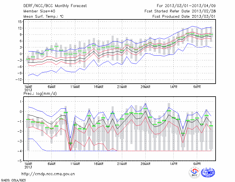 呼和浩特 (LAT:40.82 LON:111.68) 2013-03-01        预测
