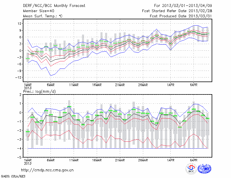 丹 东 (LAT:40.05 LON:124.33) 2013-03-01        预测