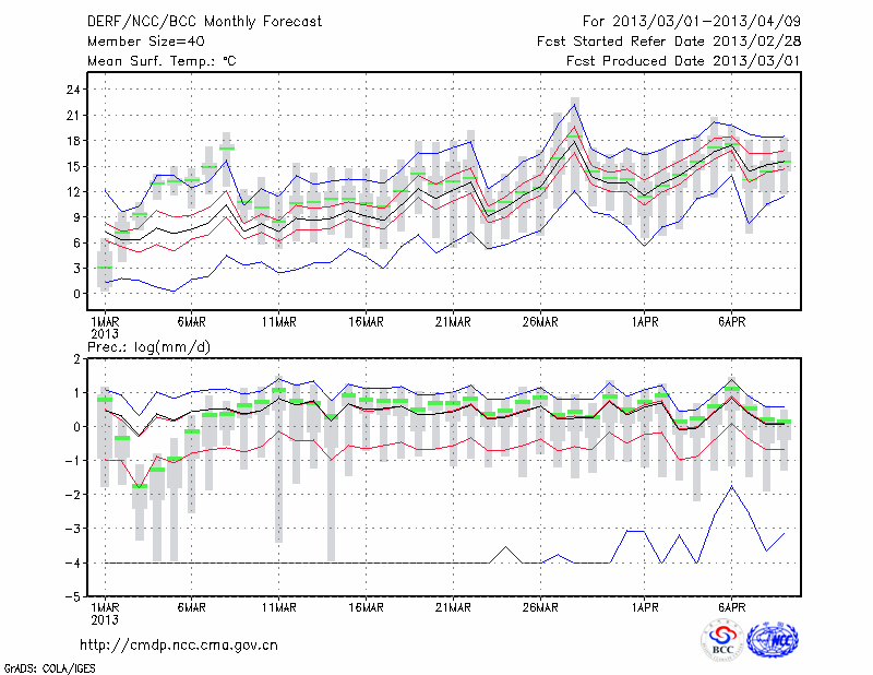 信 阳 (LAT:32.13 LON:114.05) 2013-03-01        预测